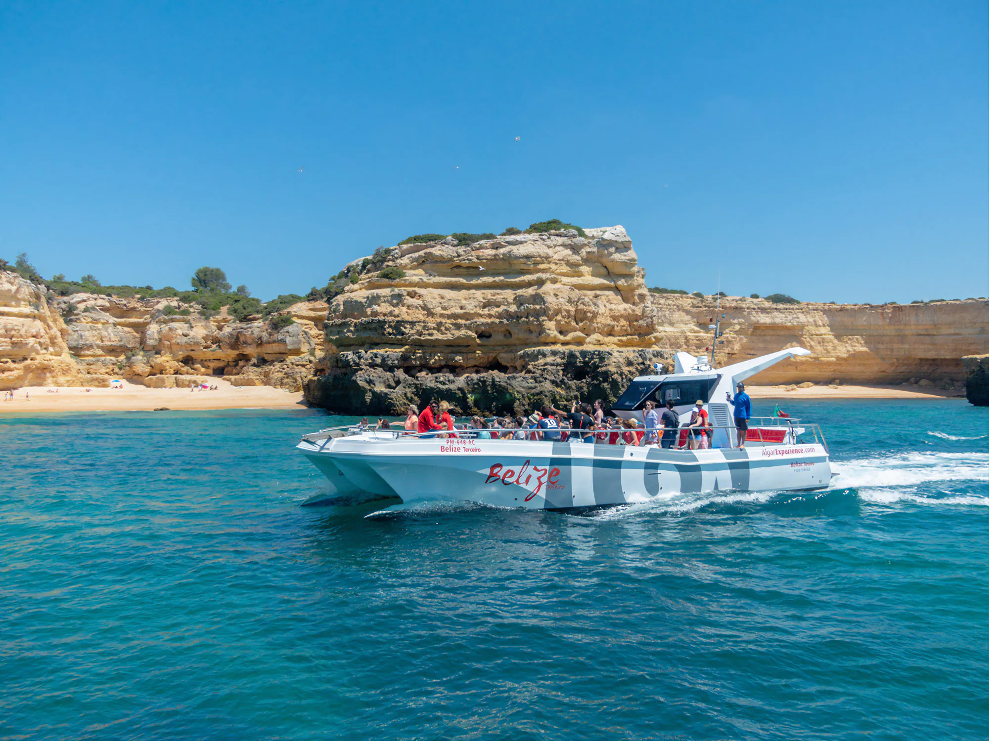 Cruise along the Algarve coastline towards São Rafael and Senhora da Rocha.