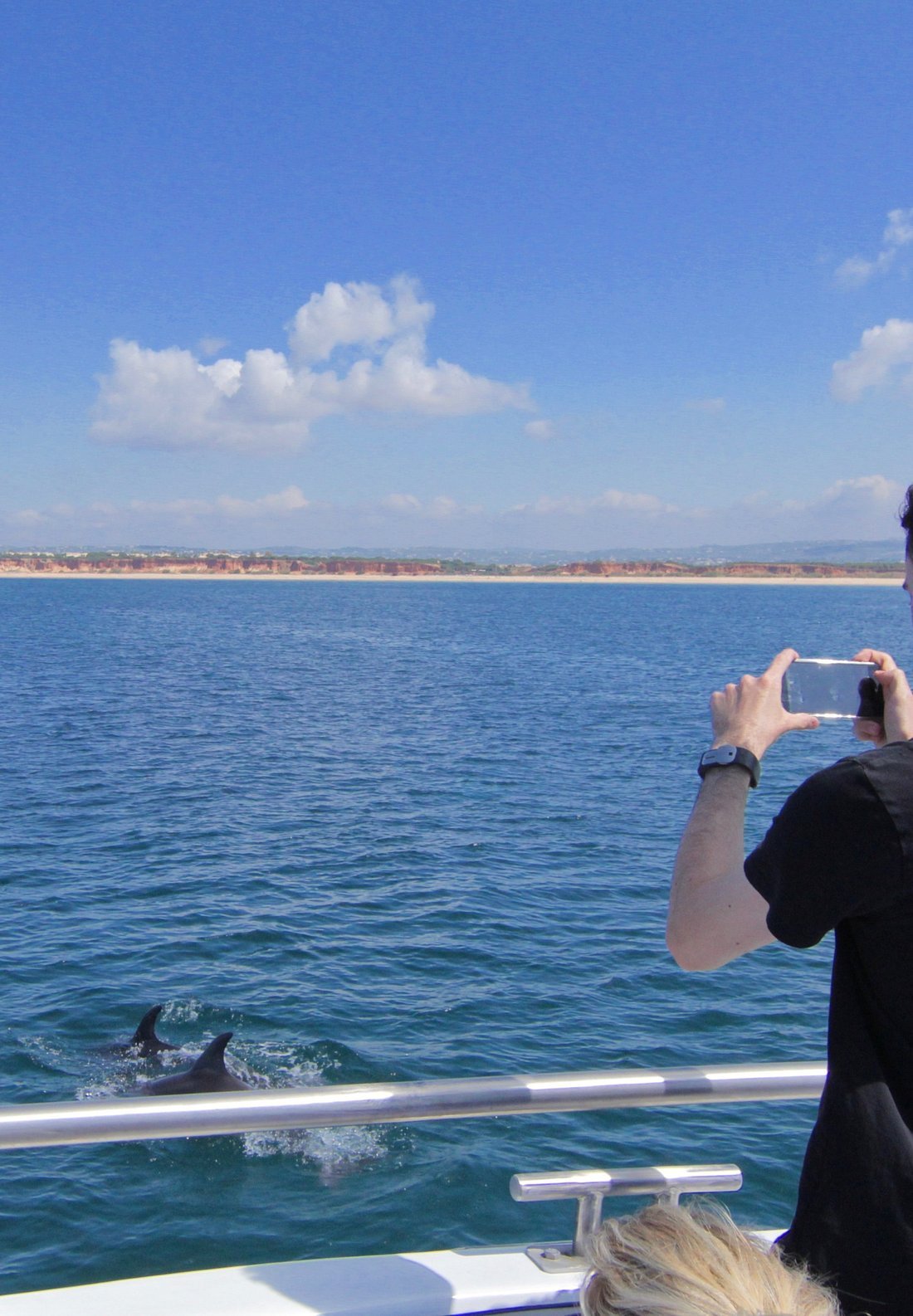 Embark on a captivating 2 to 2.5-hour Dolphin Quest catamaran cruise from Vilamoura and venture into the pristine waters of the Algarve in search of wild dolphins in their natural habitat.
