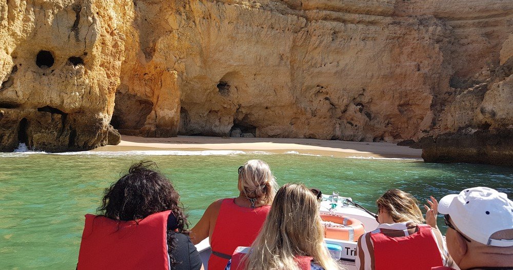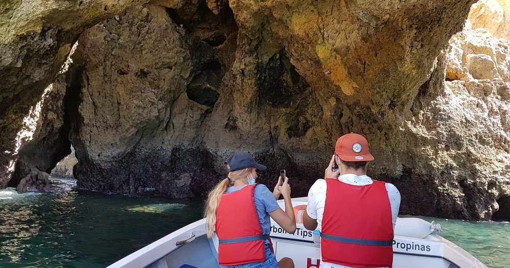 Along the route, admire impressive rock formations, hidden coves, and iconic beaches such as Praia da Dona Ana, Praia do Camilo, and Praia da Pinhão. Venture inside world-famous grottos including the Cathedral, Kitchen, Living Room, and Skull, and glide through narrow passages like the Siamese Twins, Arch of Triumph, and Corridor.