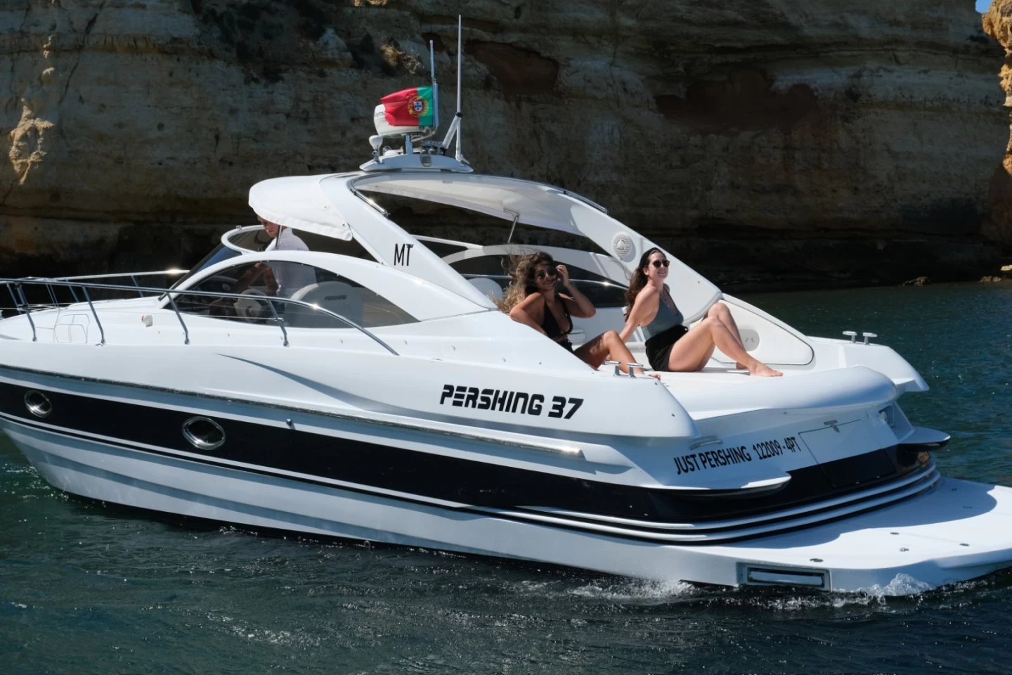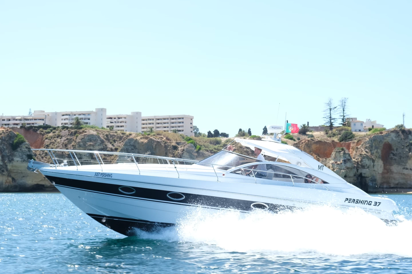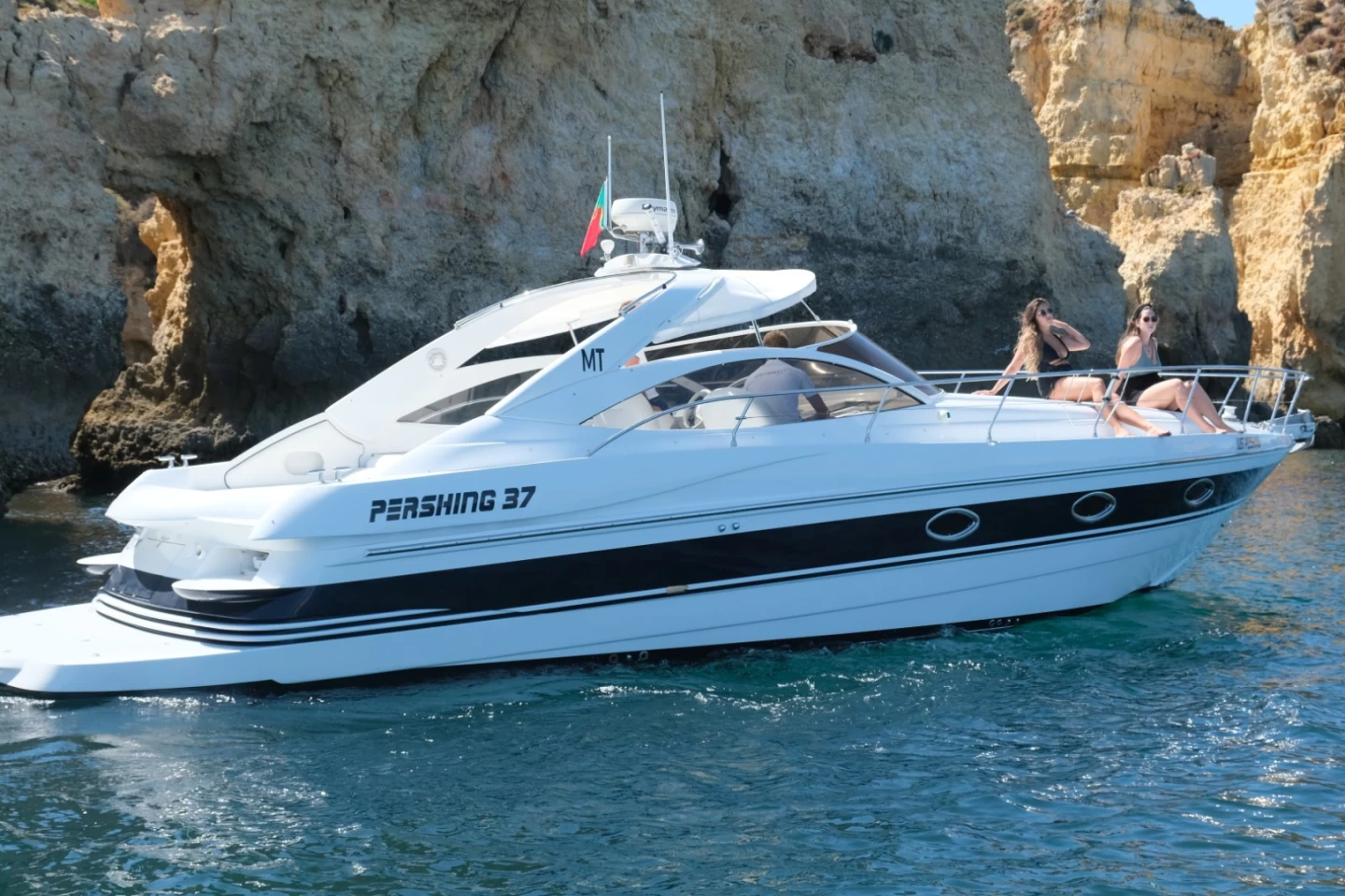 Elegant, powerful, and designed with absolute attention to detail. The Pershing 37 delivers a premium yachting experience along the stunning Algarve coastline. With exceptional stability, smooth sailing, and a spacious bow solarium, this yacht is perfect for relaxing, exploring, or celebrating in style. ✨🛥️