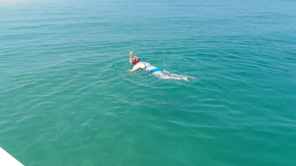 Snorkeling takes place in shallow waters (approximately 1.5m to 1.8m depth).